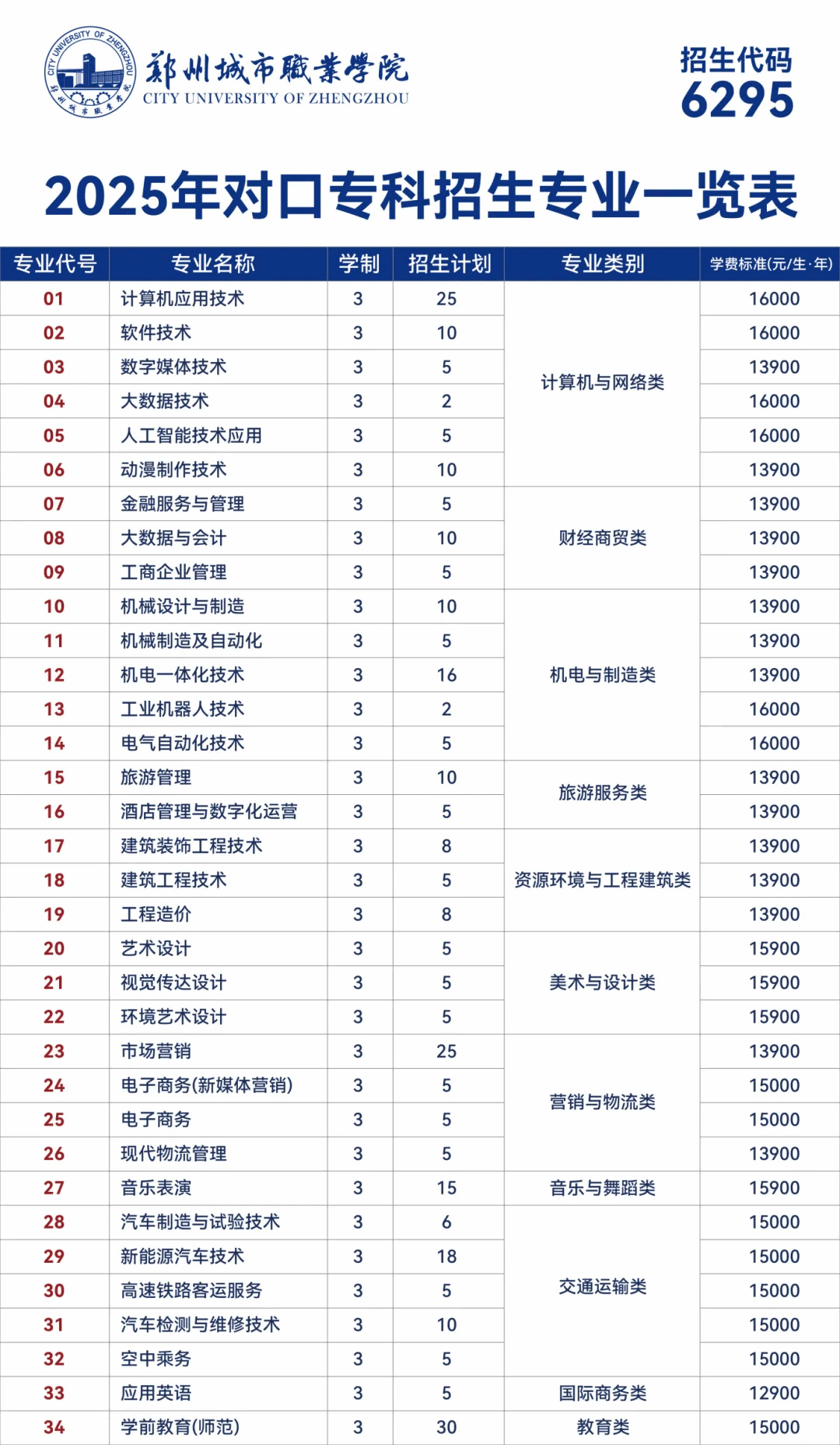 郑州城市职业学院招生代码:6295