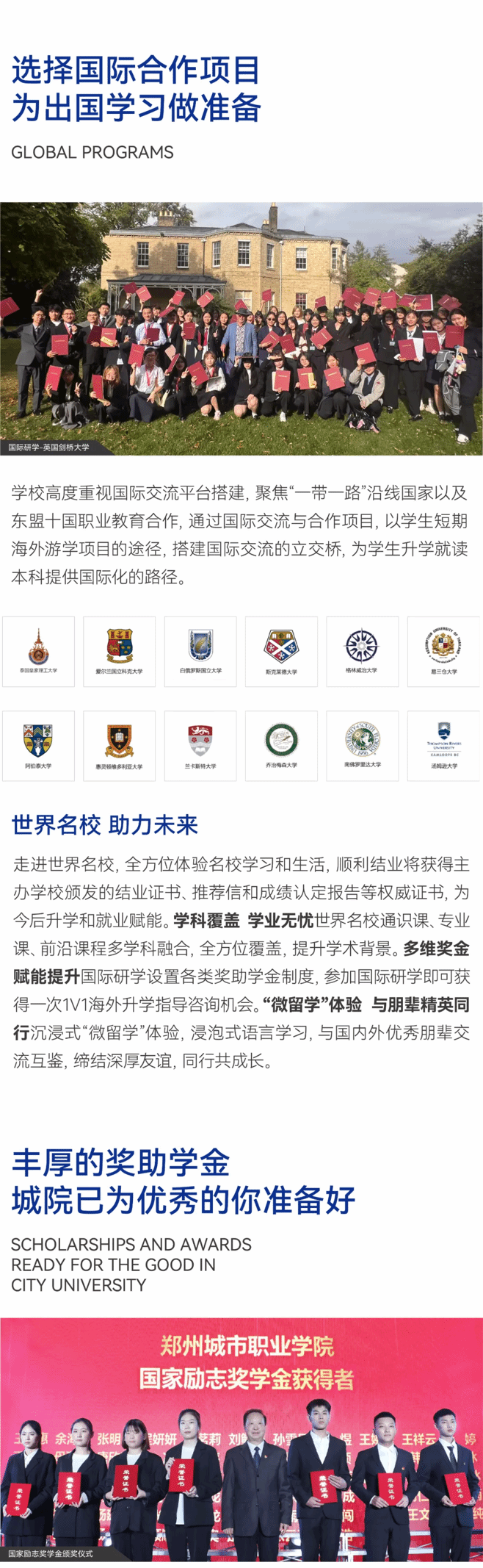 郑州城市职业学院是经河南省人民政府批准、教育部备案的普通高等职业院校,学校立足国家中心城市郑州。学校现有在校生18000余人,开设40多个专业,10多个专业入选河南省职业教育特色院校项目骨干专业,全国唯一开设前沿稀缺耐火材料专业的高职院校。思政研究成果入选“教育部全国高校思政优质教育资源”。