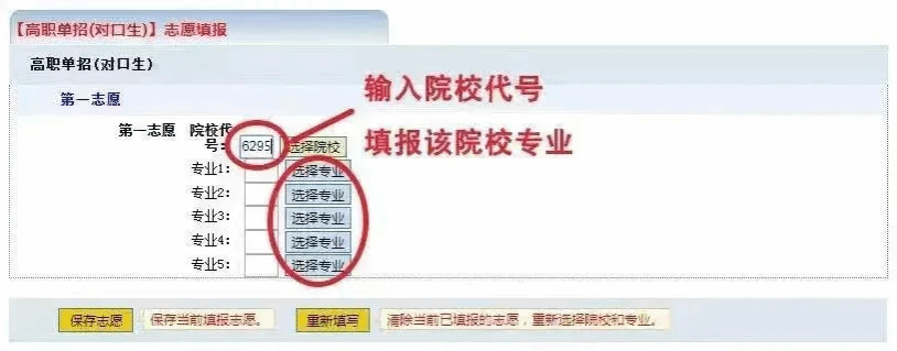 输入院校代号:6295,填报专业。